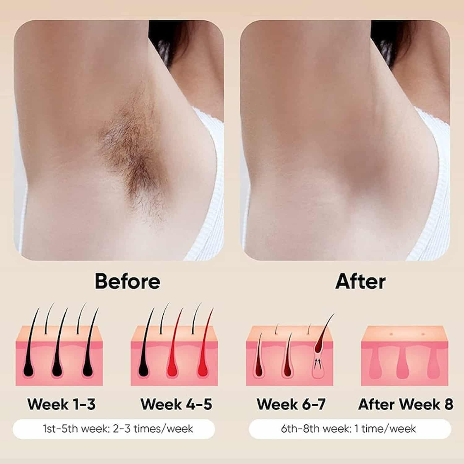 Real users are already seeing the difference: "I was skeptical after years of wasting money on razors and salon visits. By week 4, my underarm hair was half of what it used to be. By week 8, I stopped thinking about hair removal entirely. This thing paid for itself before I finished the first month."